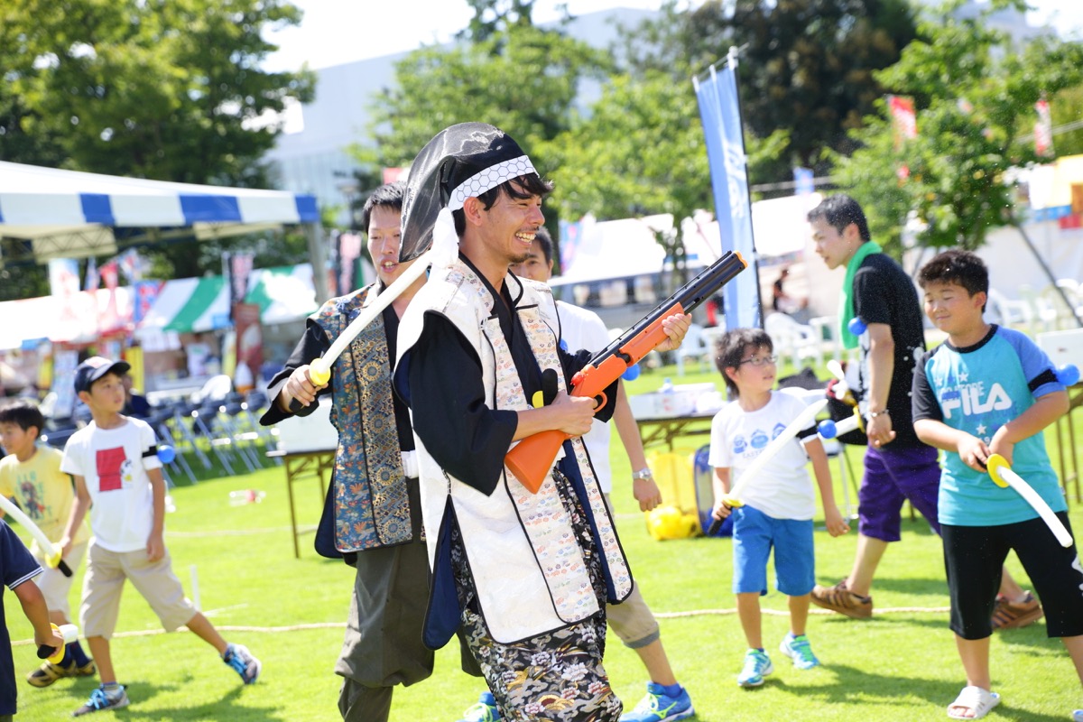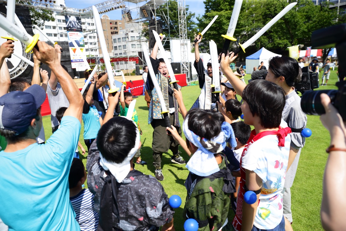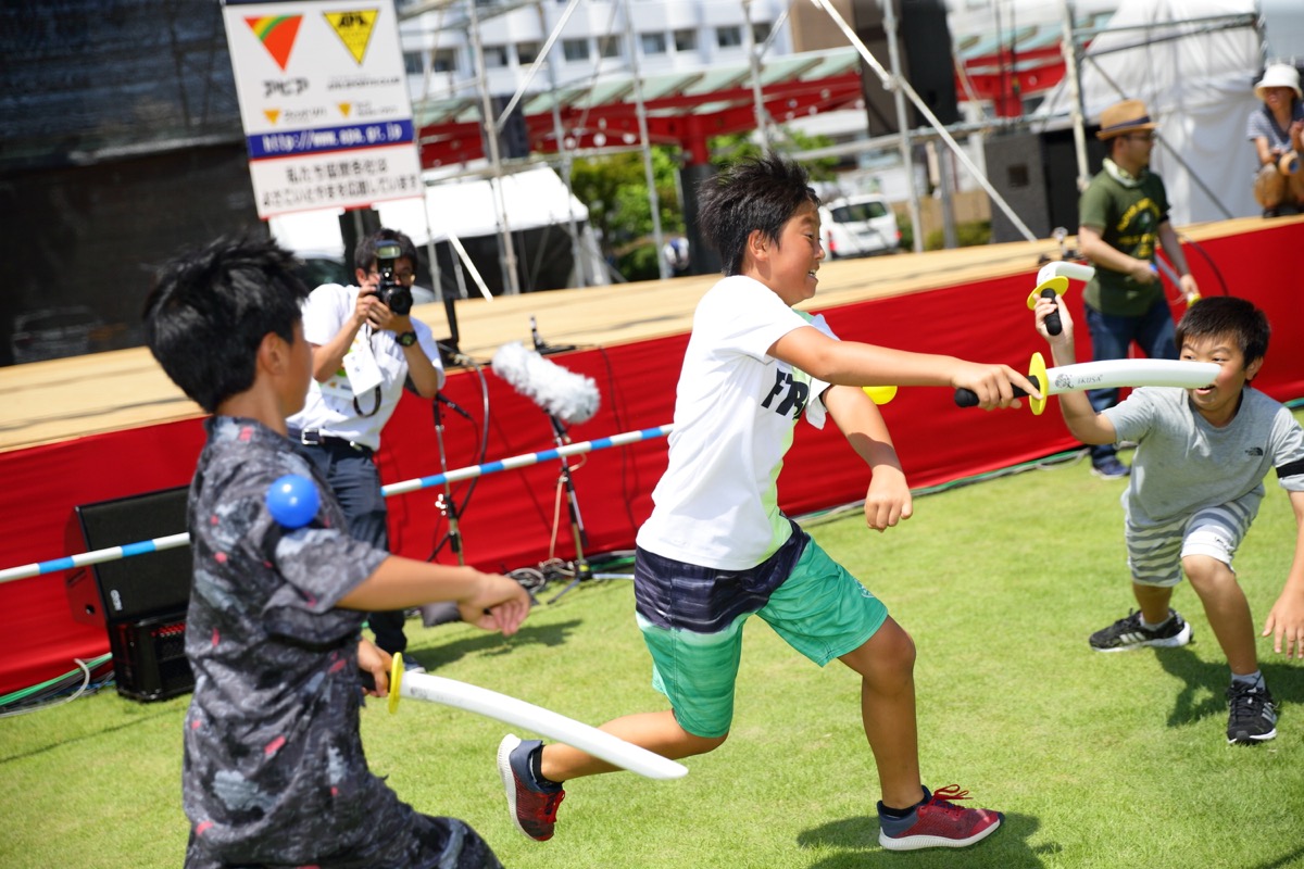 富山県で初開催のチャンバラ合戦。天気が良すぎたこともあって、暑く、熱く、盛り上がりました。ご参加いただきましたみなさま、本当にありがとうございます。