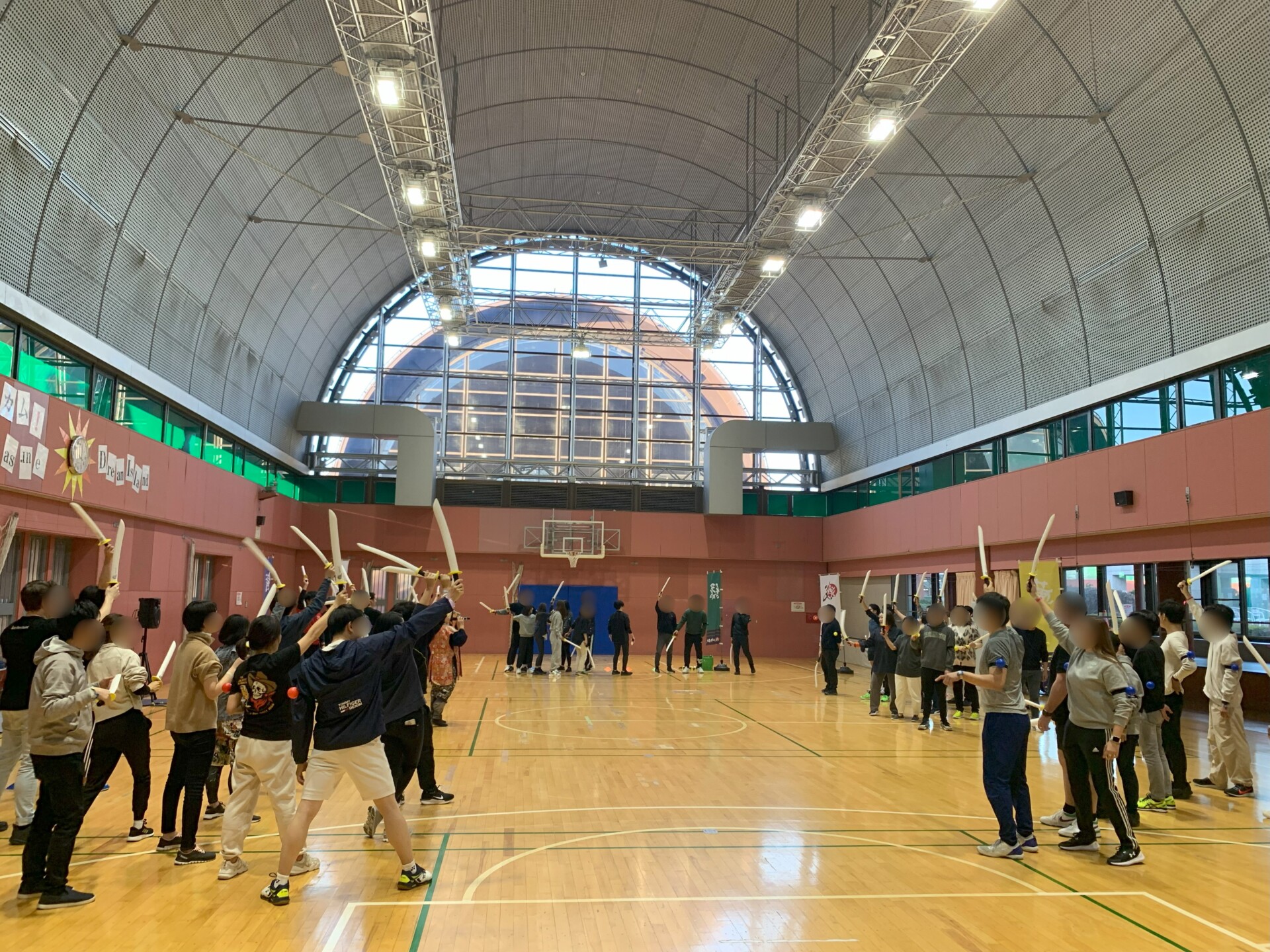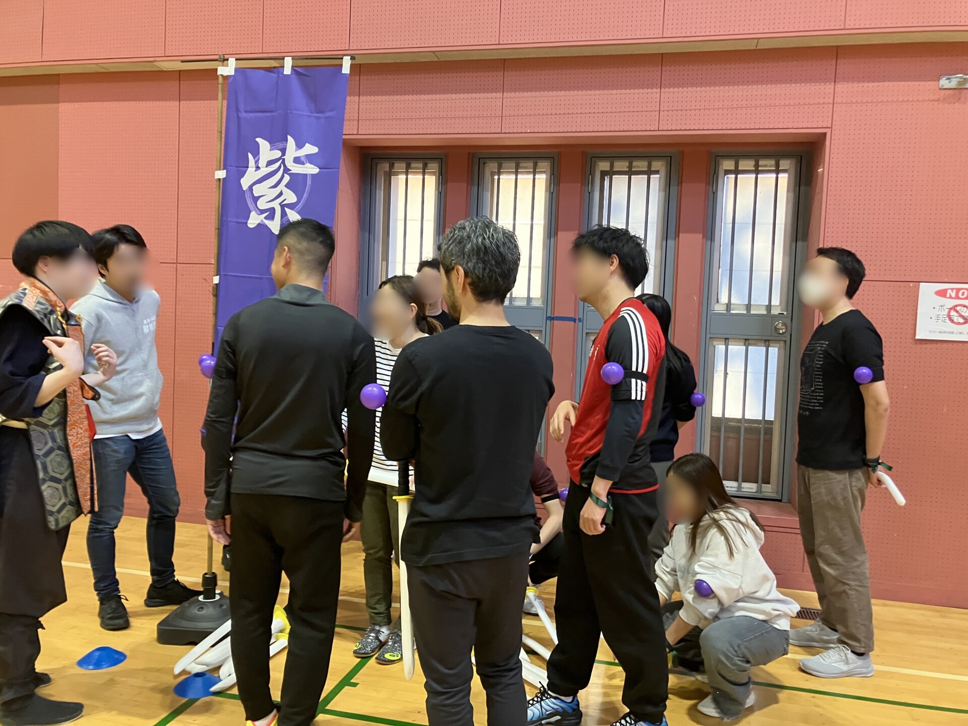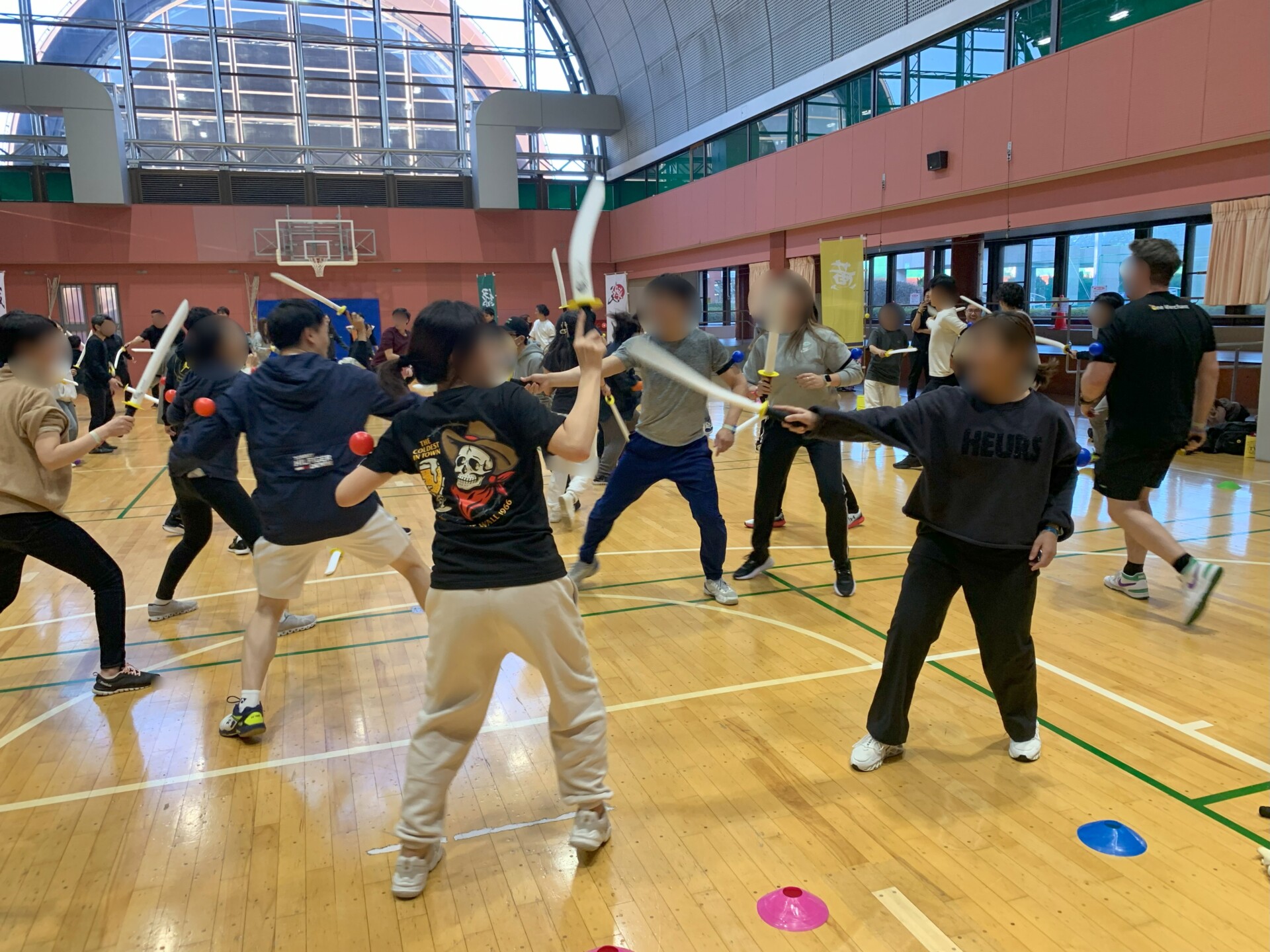 今回のチャンバラ合戦には、従業員の方々約50名が参加されました。