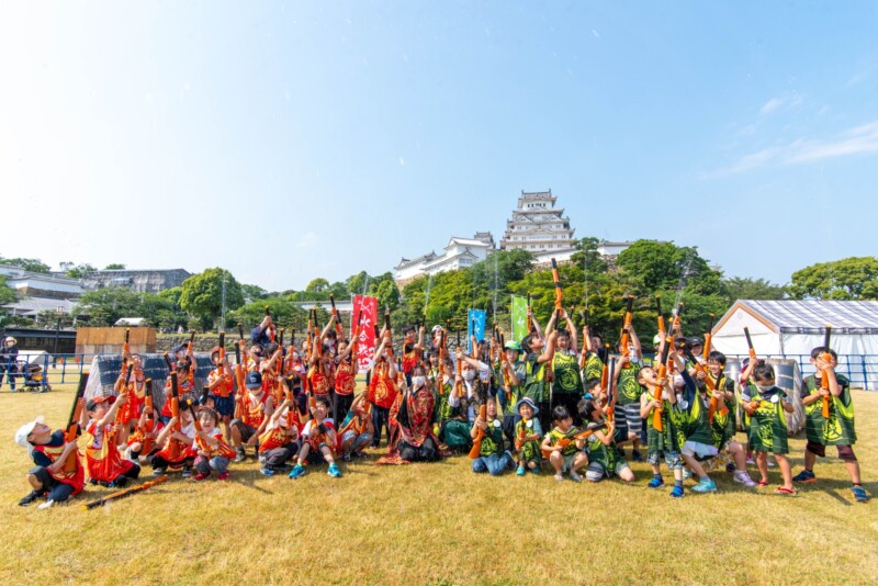 「チャンバラ合戦」は、痛くないオリジナルのスポンジ製の「刀」を持ち、腕に「命」となるボールを装着して大人数で戦います。参加者はまるで戦国武将になった気分で、軍議や合戦を楽しむことができます。