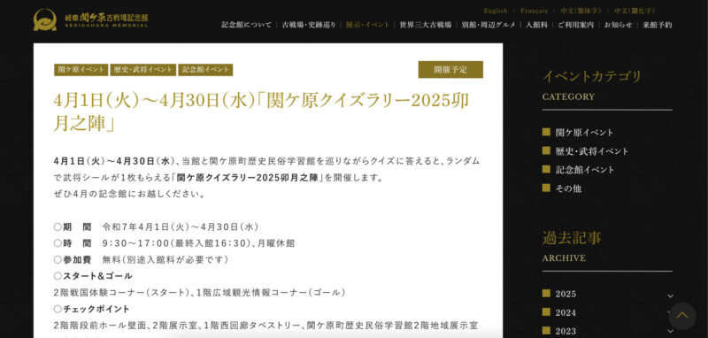 参照:4月1日(火)~4月30日(水)「関ケ原クイズラリー2025卯月之陣」 – 岐阜関ケ原古戦場記念館