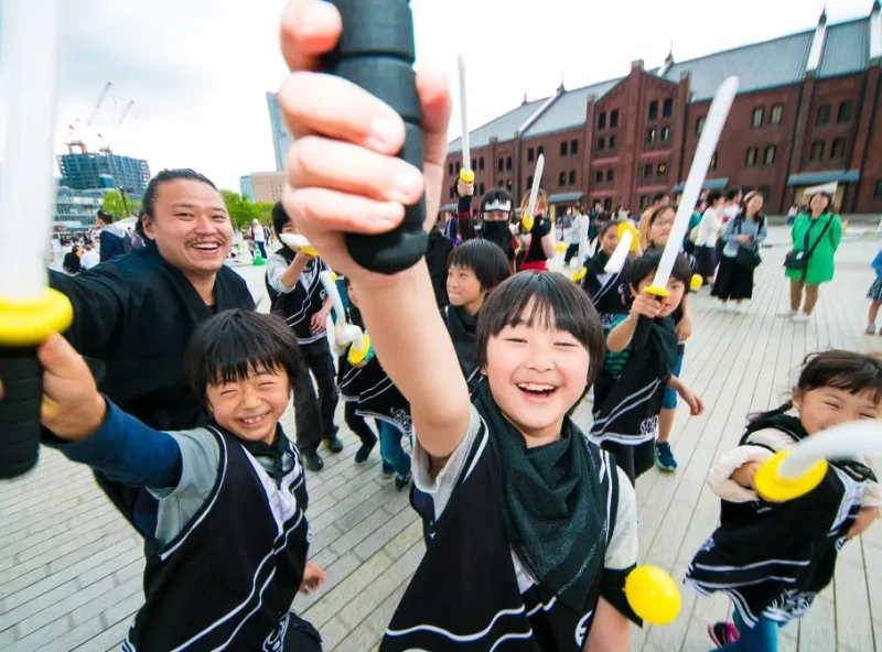 「忍者合戦 -SHINOBI-」 は参加者全員が忍者になりきり、チャンバラ合戦をするアクティビティです。場所や人数、国籍の枠にとらわれず、老若男女が楽しめます。