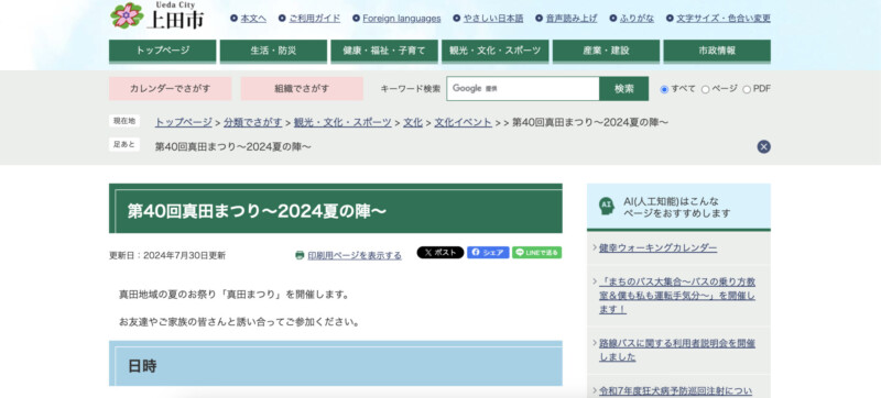 参照:第40回真田まつり~2024夏の陣~ – 上田市ホームページ