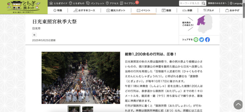 - イベント名:日光東照宮秋季大祭
