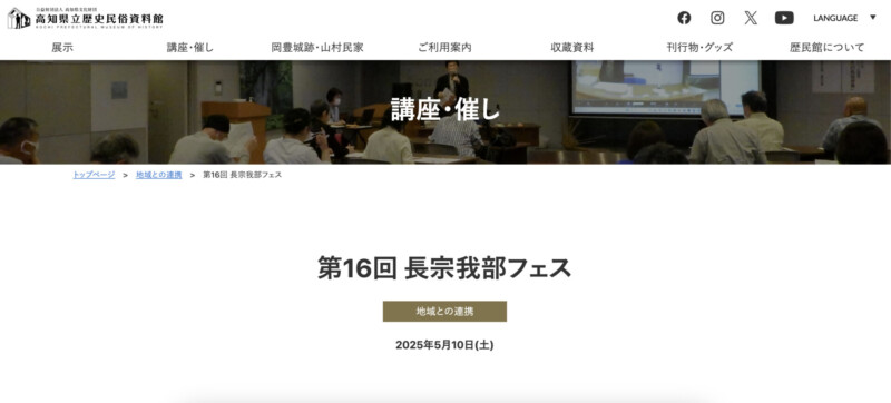 - 開催地:高知県南国市岡豊町八幡1099-1 高知県立歴史民俗資料館