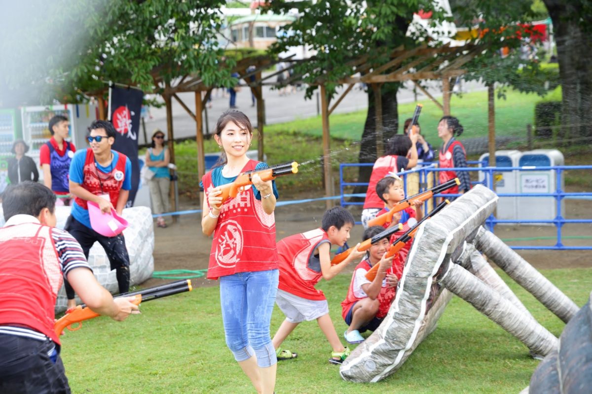 今回は、夏にぴったりの水鉄砲を使用した合戦、水合戦を行っていただきます。