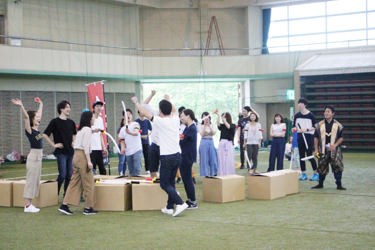 今回は担当者様からのご依頼を受けまして、研修合宿にてチャンバラ合戦を開催いたしました!