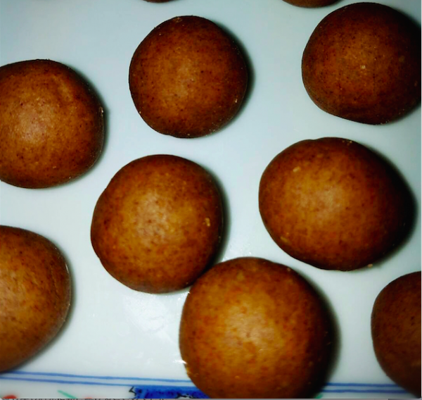 戦の定番の行動食兵糧丸。これを鎧に巻きつけ携帯して食べていました。